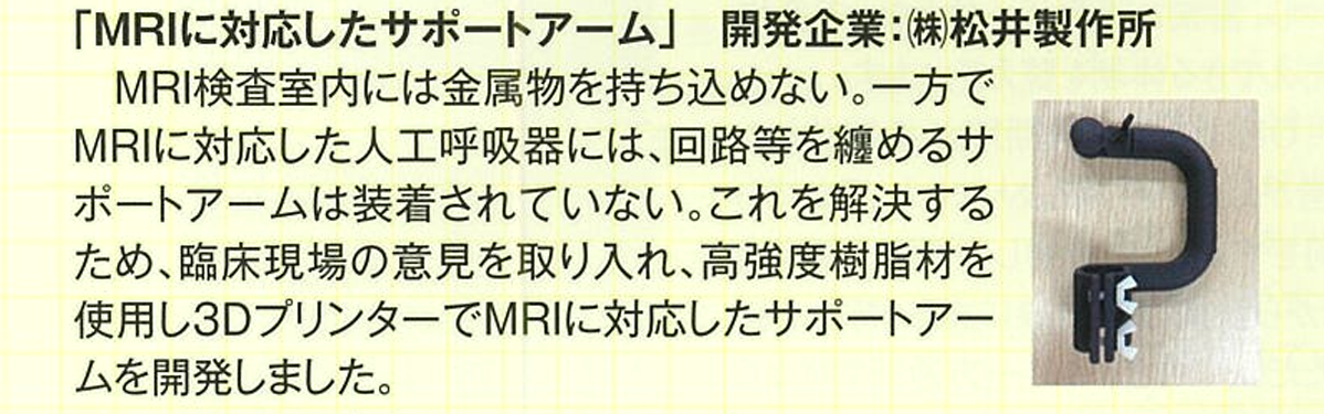 当社が開発したMRI用人工呼吸器サポートアームが、神戸市機械金属工業会の会報誌「JOURNAL」第44号で紹介されました。